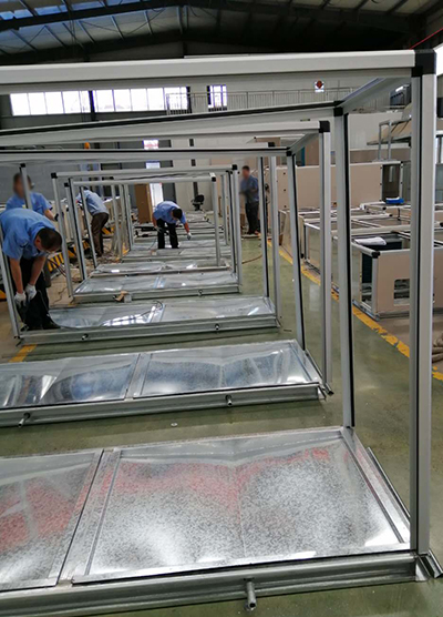 河南項(xiàng)目某文化體育中心訂購(gòu)大商的屋頂式、落地式、吊裝式熱回收空調(diào)機(jī)組第二批貨正井然有序的生產(chǎn)制作中!